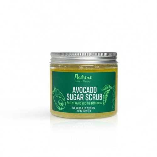 NURME Avocado Sugar Scrub Vartalokuorinta – Tässä tuotteessa on valjastettu avokadon terveelliset ainesosat elvyttämään ikääntyvää ja väsynyttä ihoa!